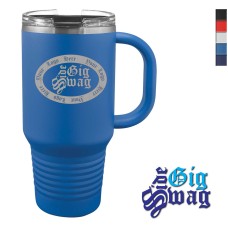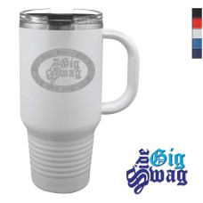 We Laser Engrave these Powder Coated Stainless Steel 32 oz Coffee Cups - Mugs with a handle which are available in 5 colors with the graphic, text or logo of your choice. Be creative or simple, it is your choice, your name, your saying - even your company logo.